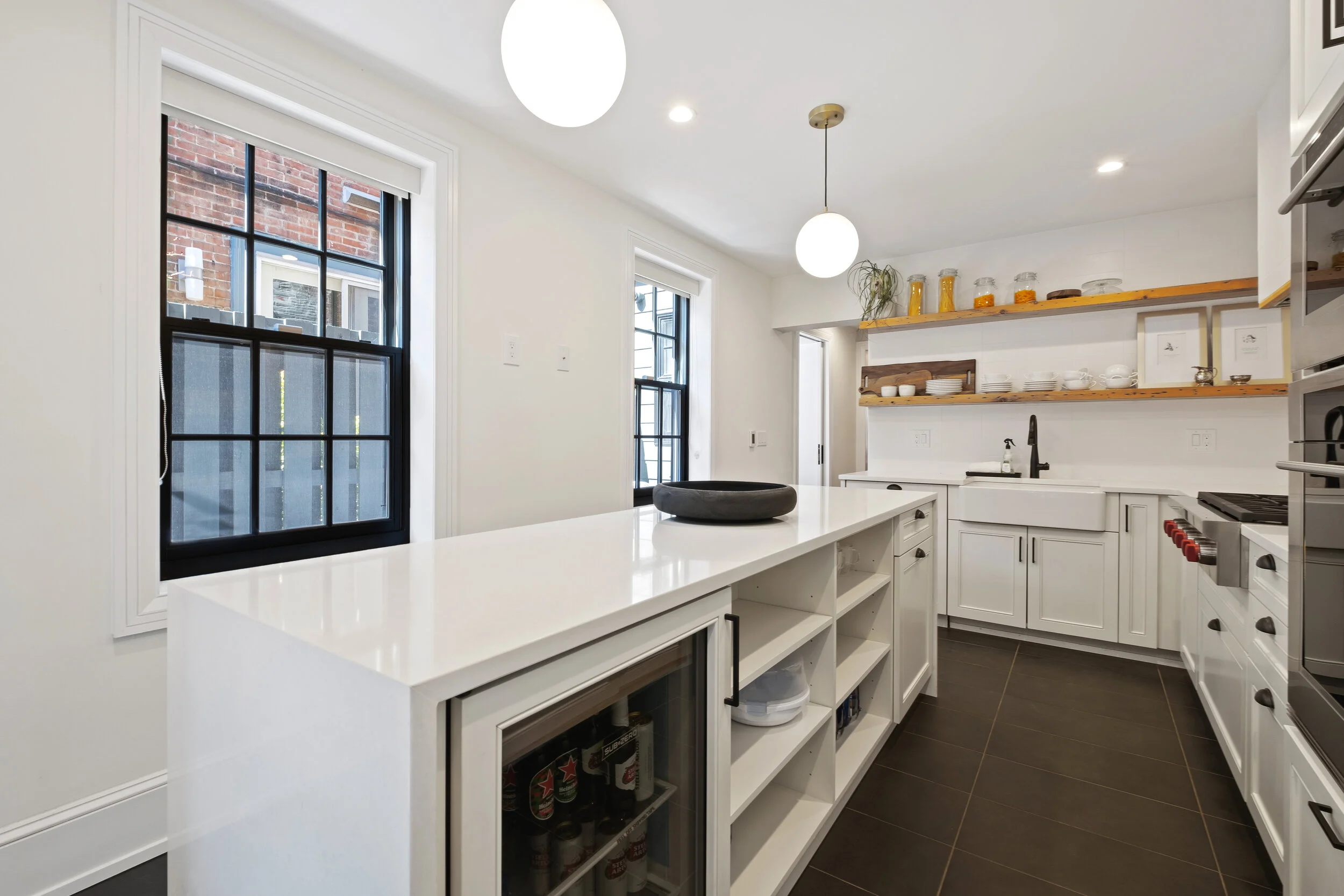 This stunning Rittenhouse Square home has been meticulously renovated top to bottom to blend original architectural details with modern comforts. This designer owned home offers 3 bedrooms, 3.5 bathrooms, fenced in bricked patio off the kitchen, third floor family room with nicely sized roof deck and finished basement (additional 375 sq ft +/-) to use as a flexible space for home office and exercise. Right away you are offered a warm welcome with the window planters, original refinished door and stone steps, into the enclosed vestibule with marble tiles.